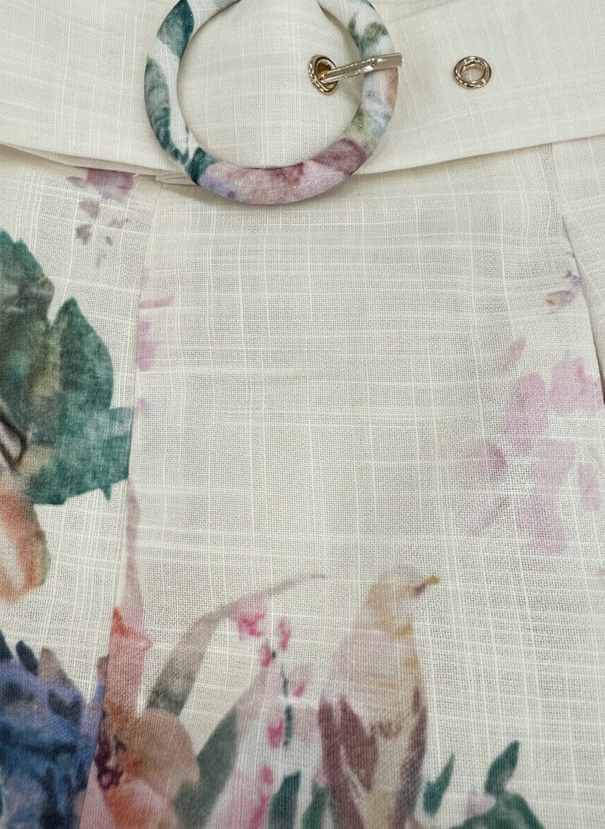 High Tea Cocktail Summer Shorts - Ivory-Floral