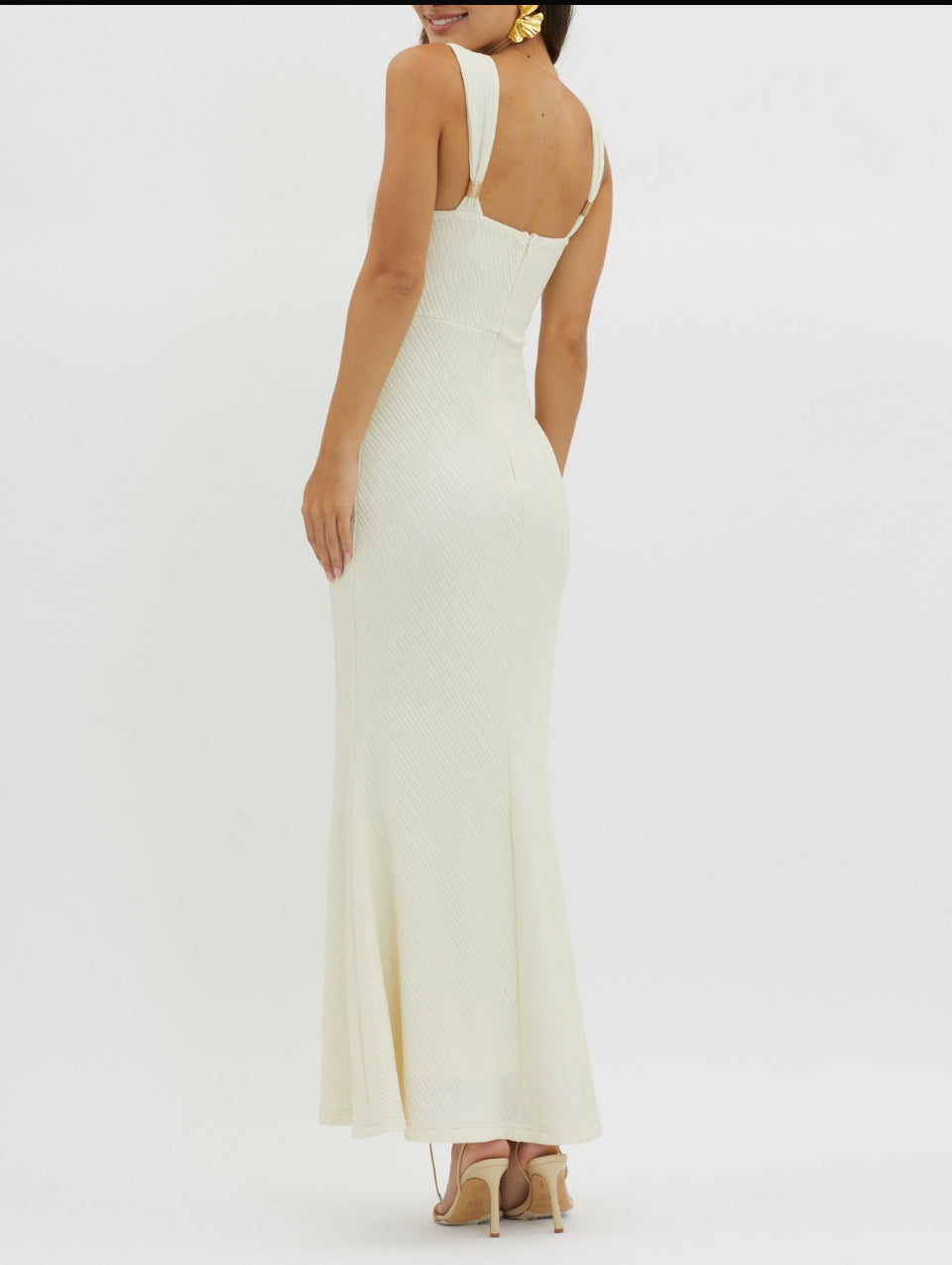 • Ladies Cocktail Dress - Ivory- Gold Buckle